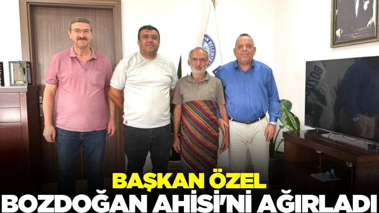 Aydın- Bozdoğan’da yılın ahisi seçilen esnaf Erkan Derban, Esnaf ve Sanatkarlar Oda Başkanı Deniz Çiftçioğlu ile birlikte Bozdoğan Belediye Başkanı Mustafa Galip Özel’i makamında ziyaret etti. Ziyarette konuşan Belediye Başkanı Mustafa Galip Özel, ahiliğin köklü bir gelenek olduğunu belirterek, "Ahilik, dürüstlüğün, dayanışmanın ve kardeşliğin simgesidir. Bu kadim geleneği yaşatan tüm esnaf ve sanatkarlarımıza teşekkür ediyor, yılın ahisi seçilen Erkan Derban’ı tebrik ediyorum" diye söyledi.